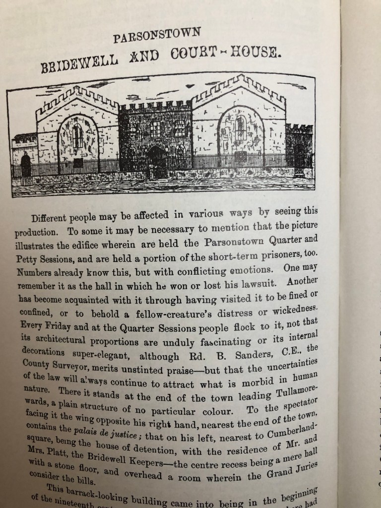 As editor of a county newspaper John Wright was at the centre of affairs and well qualified to write a county guide. He saw the Land War, the birth of ‘The Midland Tribune’ in 1881 – this paper growing out of the Land League – and the resistance to these changes from Birr Orange Lodge and the county unionist association. John Wright was familiar also with the workings of the courts, and the most interesting parts of his book were his anecdotes and recollections of famous murder cases, famous trials, and of lawyers and judges.