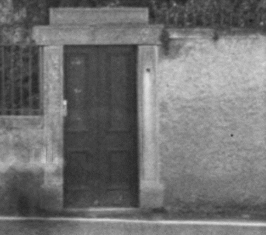 Fig 13. One of the two doors leading from Cormac Street into the front garden. The door cases were formed by four limestone slabs with pulvinated or convex panels on either side. Courtesy National Library of Ireland.