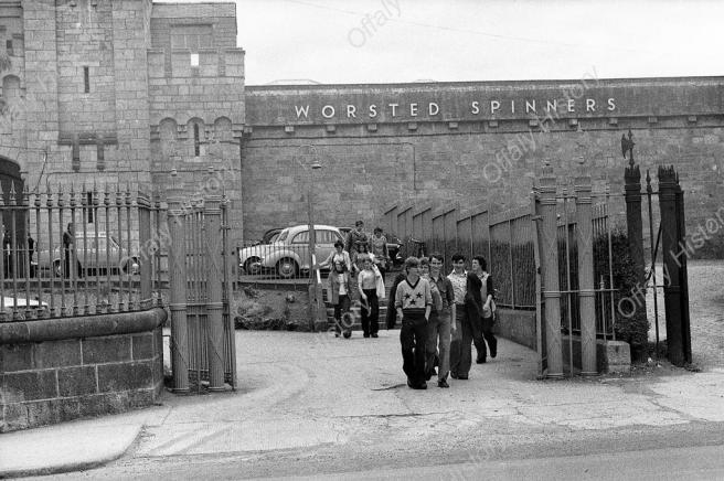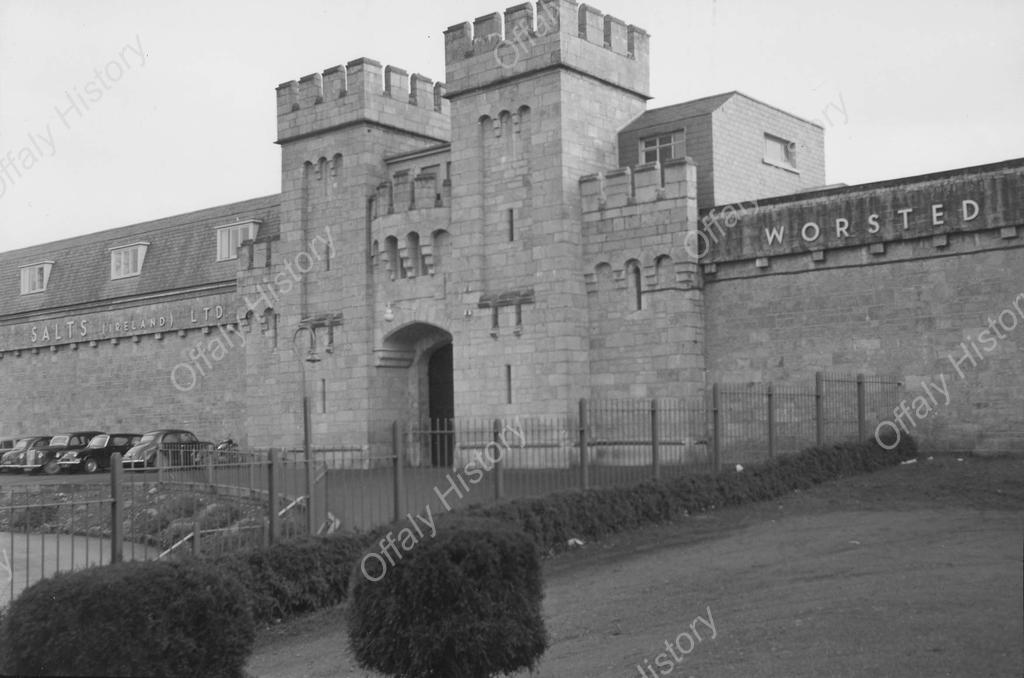 Salt’s spinning mill, erected on the site of old Tullamore jail, was the largest employer in Tullamore for about thirty years. Prior to its completion in 1938 there had been no major factory in the town from with the loss of the Goodbody tobacco factory due to a fire in 1886. Any tradition the town had in textiles was gone since the 1820s. A linen factory building had been constructed in 1754 but was out of use by 1800. Salts decided on Tullamore after making a short list of suitable towns, interviewing the town council and satisfying themselves in regard to the site at the old jail which had been largely destroyed in 1922 during the civil war. Nothing could have been done without the support of the townspeople, William Davin, TD and the Minister for Industry and Commerce Sean Lemass.