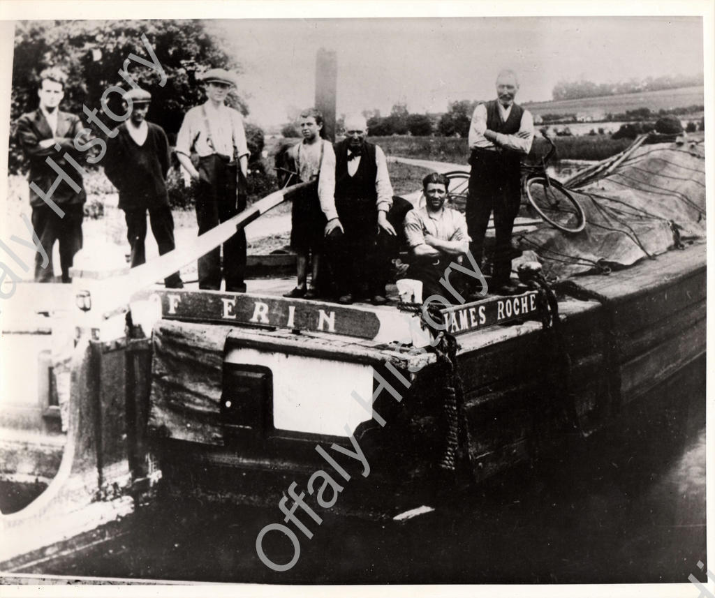 Fig 3. ‘Maid of Erin’, Grand Canal 1928. Left to right: Jim Roche, Tom Roche, Bernard Roche, lock keepers’ son, James Roche barge owner, Jack Roche, lock keeper. Courtesy Sean Roche.