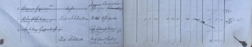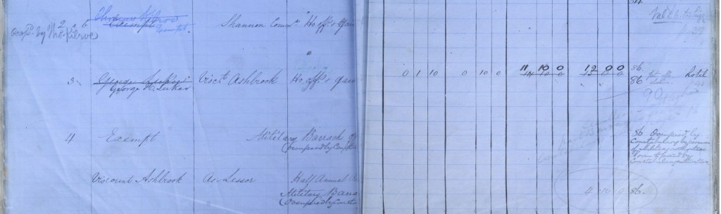 The Occupier was John Charters and he was renting directly from Lord Ashbrook who owned the whole village at the time. However, when the valuators had come to the village ten years earlier, in 1844, the occupier was Robert Sarson (Searson). Robert was the son of Master Gunner Francis Searson.