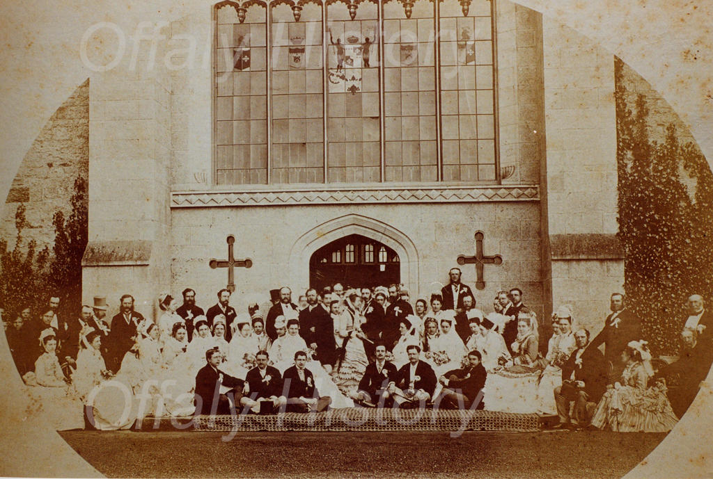 David Hutton Bury was a great grandson of Col. Edmund Bacon Hutton (d. 1904) who had married Lady Katharine Bury at Charleville in June 1873. She was a daughter of the third earl of Charleville and she and her other siblings were orphaned very young with the death of their mother in 1857 and father in 1859. One of her sisters was the ill-fated Harriette who died in a shocking accident on the stairwell of the castle in 1861 and her sister Lady Emily (d.1931) was the mother of Colonel Bury of Everest fame. Lady Katharine’s was the last Bury family wedding at Charleville Castle and was a great affair, and of which a photograph survives in the Biddulph Collection in Offaly Archives. The wedding and the coming of age of the fifth earl a few weeks earlier in May 1873 was the last great public celebration of the Bury association with Tullamore. It can be linked back to the first visit of Charles William Bury (later first earl, second creation) almost exactly 100 years earlier.