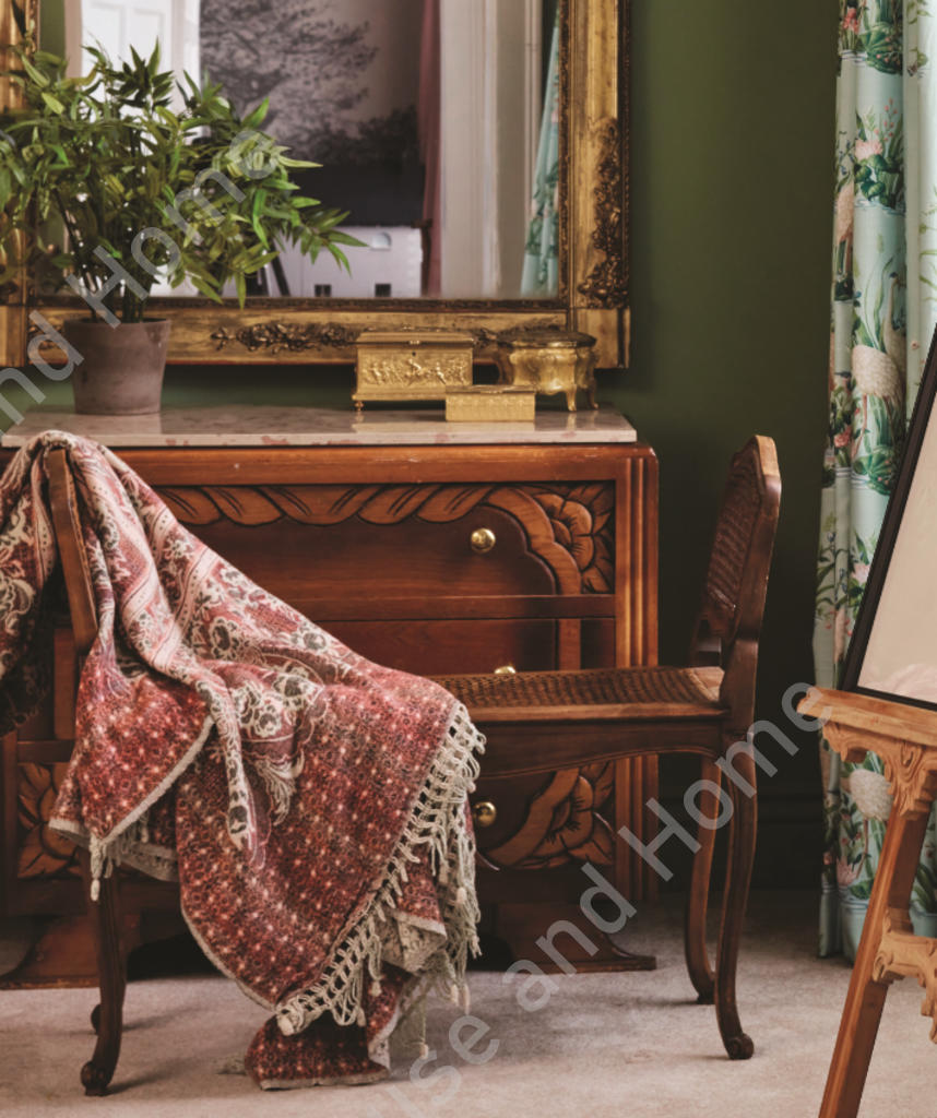The paint colour in the guest room is ‘Aharney Dew’ from Acres Hall. The drapes were made bespoke by Boland’s Curtains Tullamore using WaterBirds fabric. The furniture was sourced at a French antique fair.
