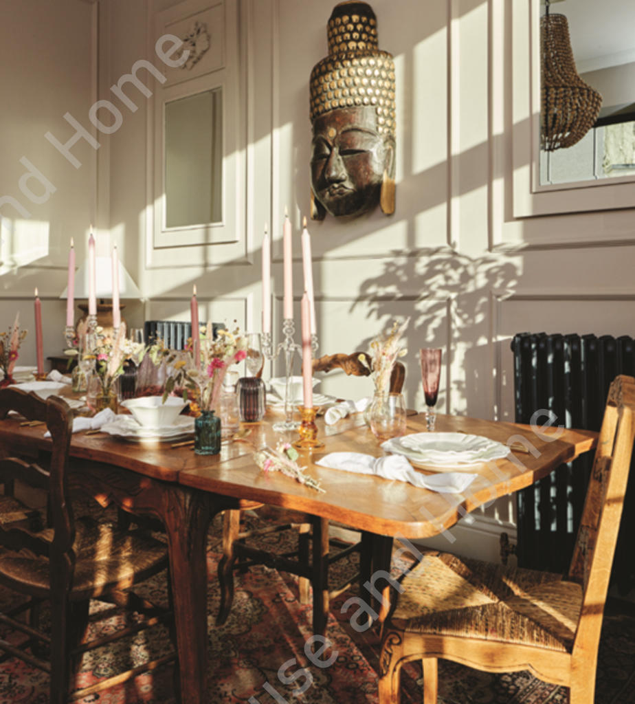 “The carved head is our latest purchase for this room and is of Indonesian origin sourced from a very special place called The Store Yard. It’s only 20 minute drive from me (it’s in Portlaoise, Co. Laois) but when I step into it, I feel as though I’ve left the country. A treasure trove full of antiques, all beautifully curated under one roof. I can’t wait to get back there once lockdown ends!” Tanya confesses. “All of the dinnerware is from one of my favourite interior shops, Grove Home in Tullamore.“