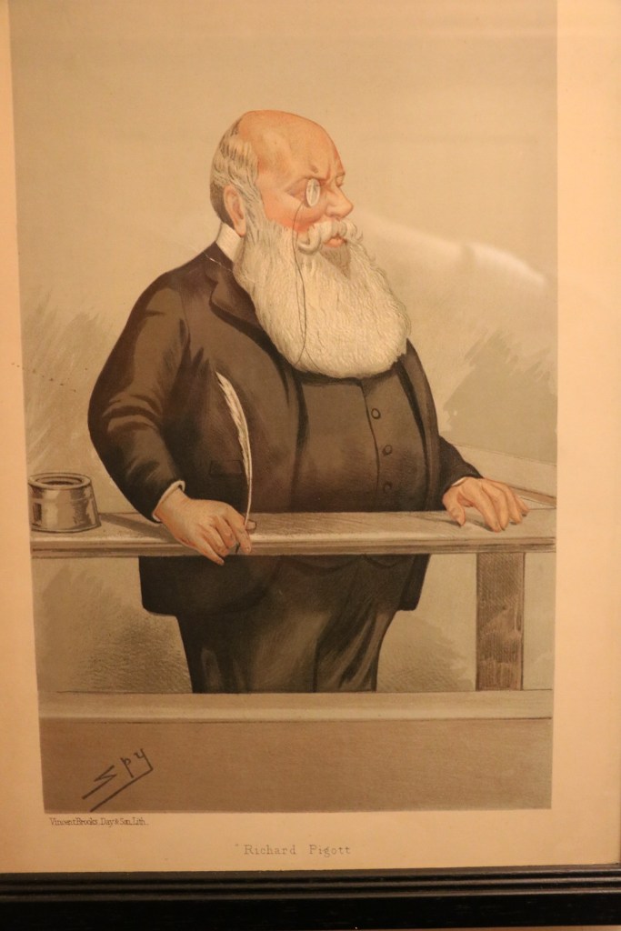 In March of 1887, the Times published a series of articles `Parnellism and Crime`, in which Parnell was accused of being involved in murder and outrage during the Land War. The Times produced a number of facsimile letters, alleging Parnell`s signature and in one of these Parnell excused and condoned the murder of T.H. Burke in the Phoenix Park (6 May 1882) In particular, the Times had paid £1,780 for a letter supposedly written by Parnell to Patrick Egan, a Fenian activist, that included `Though I regret the accident of Lord Cavendish`s death I cannot refuse to admit that Burke got no more than his deserts` and was signed `Yours very truly, Charles S. Parnell`. On the same day it was published (18th April 1887) Parnell described the letter in the House of Commons as `villainous and barefaced forgery`. The commission which sat for 128 days exonerated Parnell when one of the witnesses, a Richard Pigott, admitted that he had forged the letters. Pigott fled to Madrid where he shot himself.