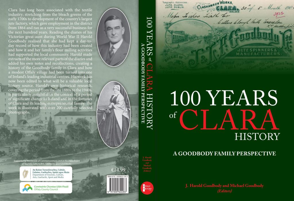 100 years of Clara History, a Goodbody family perspective, J. Harold Goodbody and Michael Goodbody editors, Esker Press, 2021, 360 pages, HB €19.99, SB €14.99 Hardback now sold out