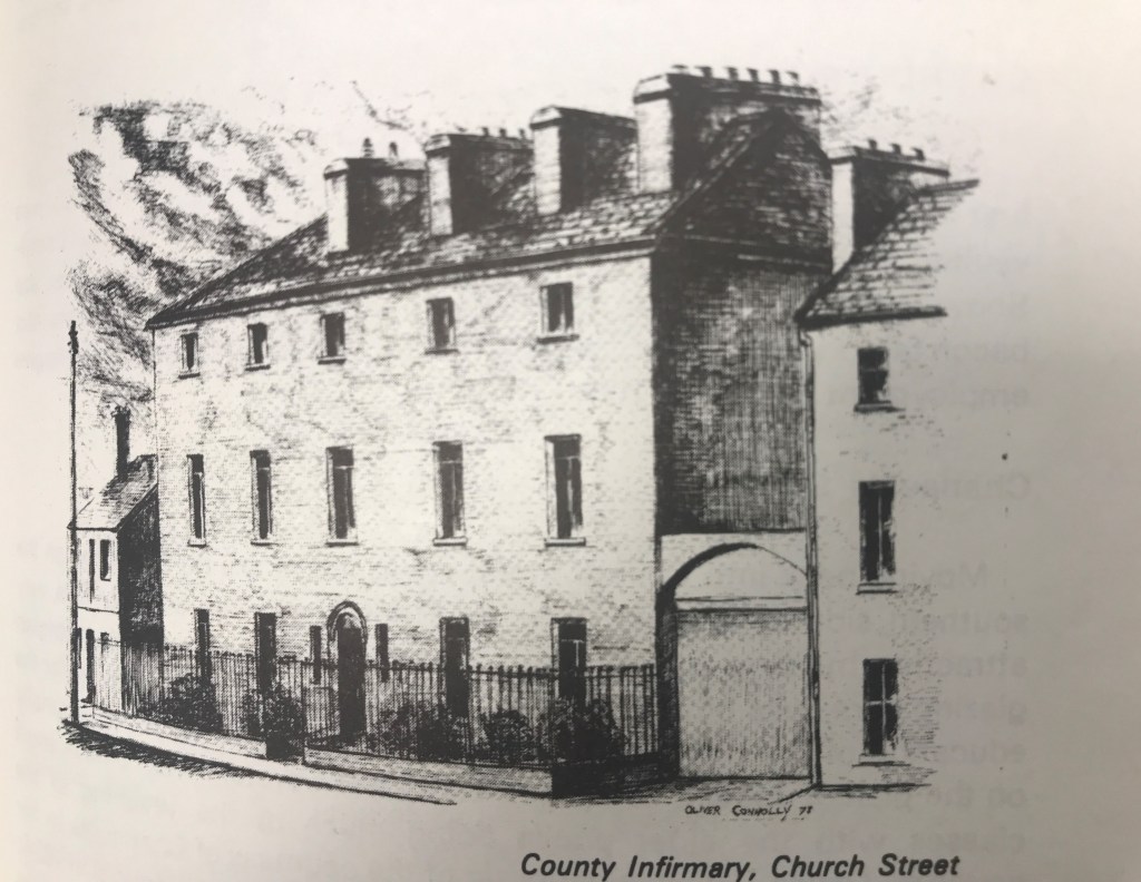 King’s County Infirmary was established under the reign of King George III with the passing of the Irish County Infirmaries Act of 1765. This act enabled the creation of infirmaries in thirty Irish counties. During the redevelopment of Tullamore town by the Earl of Charleville, a new infirmary building was erected in 1788 on Church Street and was further extended in 1812.