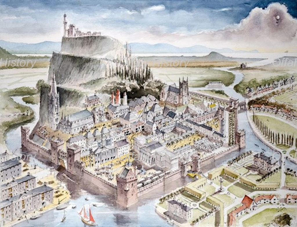 The entrances and watchtowers of this fortress are composed of Srah Castle, the old Gaol, the Mucklagh Gate, Camden Tower and Acres Folly and the entry to the Pentland Distillery in Market Square.