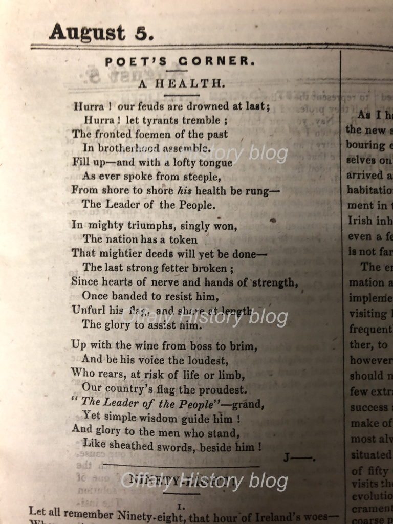 As we mark his passing 170 years ago, he lies in, as of yet, an unmarked grave in Glasnevin cemetery. His grave is located in the shadow of the O`Connell Monument, which is apt, as it was Daniel O`Connell`s Repeal movement that first brought him to a Nationalistic disposition. The failure of the Repeal Movement brought him on to more hard-line political point of view, and sympathy with the Young Ireland Movement.