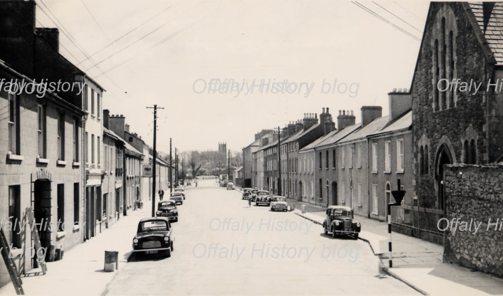 The plot at the junction with William/Columcille Street (the former Gilson’s Corner) is L-shaped in plan and is of an early date (334 ft to Columcille Street and 101 ft to Patrick Street) Most of the houses on this plot on the William/Colmcille Street side from the Wolftrap pub (but not including) were originally single-storey. The gardens on this plot here were very small and were in line with the rear boundary to Offally Street east. The lease of most of the rest of Columcille Street was to Thomas Acres in 1790 suggesting a much smaller town before 1790 with most of the town north of the river concentrated about Patrick Street and the junction with Columcille Street. Patrick Street north had just one lane off it known as Swaddling/ Ruddock’s and later Brides Lane (behind what is now the Italian restaurants). Ruddock’s Lane was the site of mainly thatched cabins and was much damaged in the fire of 1785. The damage included that to the first Methodist (Swaddlers so called) church.