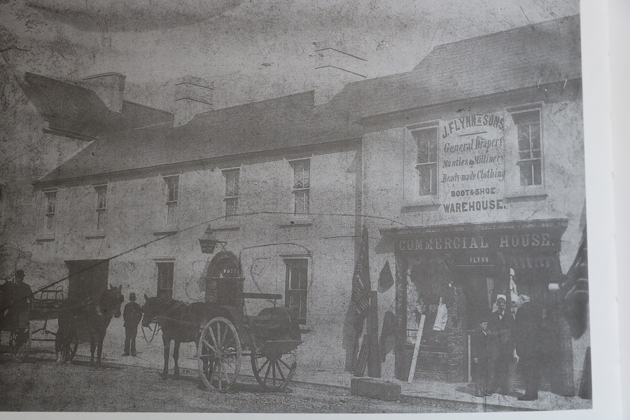 The photograph below is adapted from the Lawrence Collection[i] looking down from Fair Green towards Main Street with Joseph Byrne’s General Grocer, Wine and Spirit Merchant in front and with St Brigid’s Roman Catholic Church to the right.