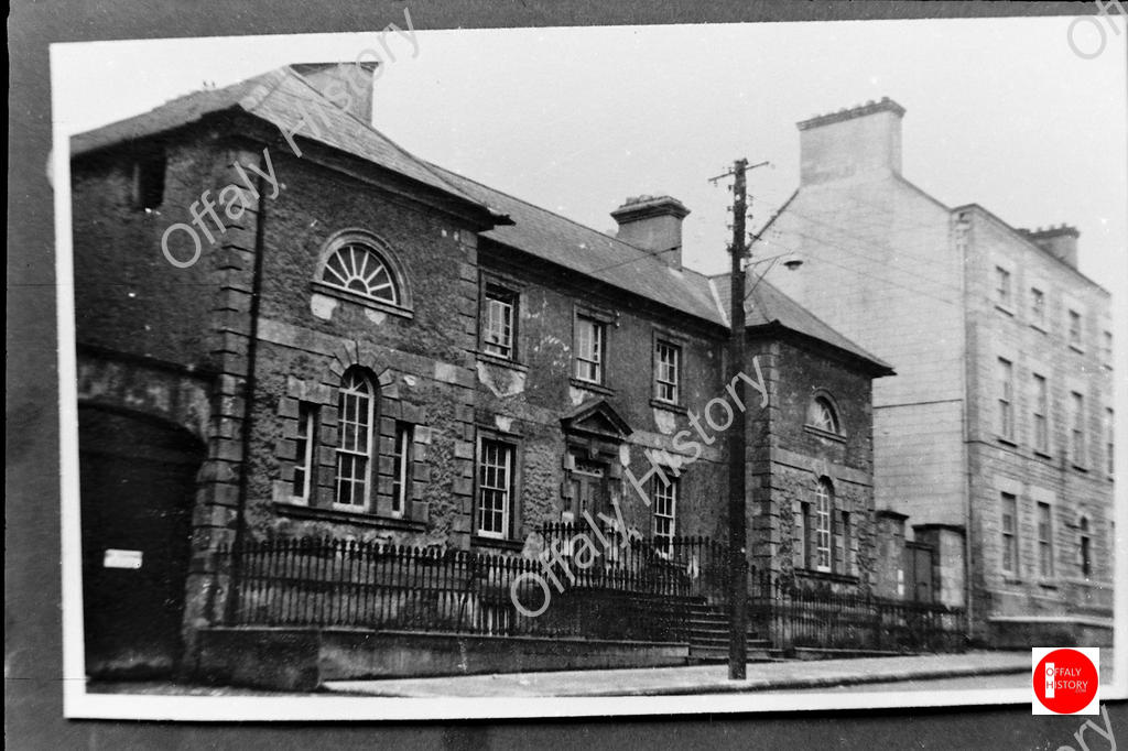 The valuers of 1843 noted that the Crawford house was occupied by Neal Browne J.P. who was said to be paying £70 a year for it to a Major Crawford who lived in Naas. It was at the time described as an old house, but well finished. It was out of use as a police barrack and residence for the magistrate by 1854. At that time it was occupied by land agent Dawson French J.P who died in 1889. He and some of his family are buried in Clonminch Church of Ireland cemetery. By the 1840s the police barracks had been moved to GV No. 4 High Street (later G. N. Walshe shop, south of Brewery Tap) and appears to have been located there until the 1890s.