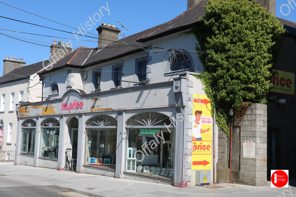 Robert Goodbody purchased Tullagh House for in all £1,200 in 1848–49. He was the founder of the Clara dynasty of Quaker merchants and was born at Mountmellick in 1781 and died at Drayton Villa, Clara (from the late 1930s to recent times the Parochial House) in 1860. In 1825 he moved to Clara to set up his sons in business at the Brosna mills. He built Inchmore, Clara in 1843 and for a time lived at Tullagh House. During the Famine years he practised as an amateur doctor. He had six sons by his first wife: Marcus, Jonathan, Thomas Pim, Robert James, Richard (died 1835) and Lewis Frederick. Thomas Pim and Robert James carried on business in Tullamore as T.P. and R. Goodbody from about the year 1836 (see GV 1 High Street) and were described as general dealers. About the year 1848 the tobacco and snuff factory were built to the rear of the shop and was an extensive Tullamore business until destroyed by fire in 1886 when the entire business was moved to Greenmount, Harold’s Cross, Dublin. The Tullamore shop closed in 1929–30.