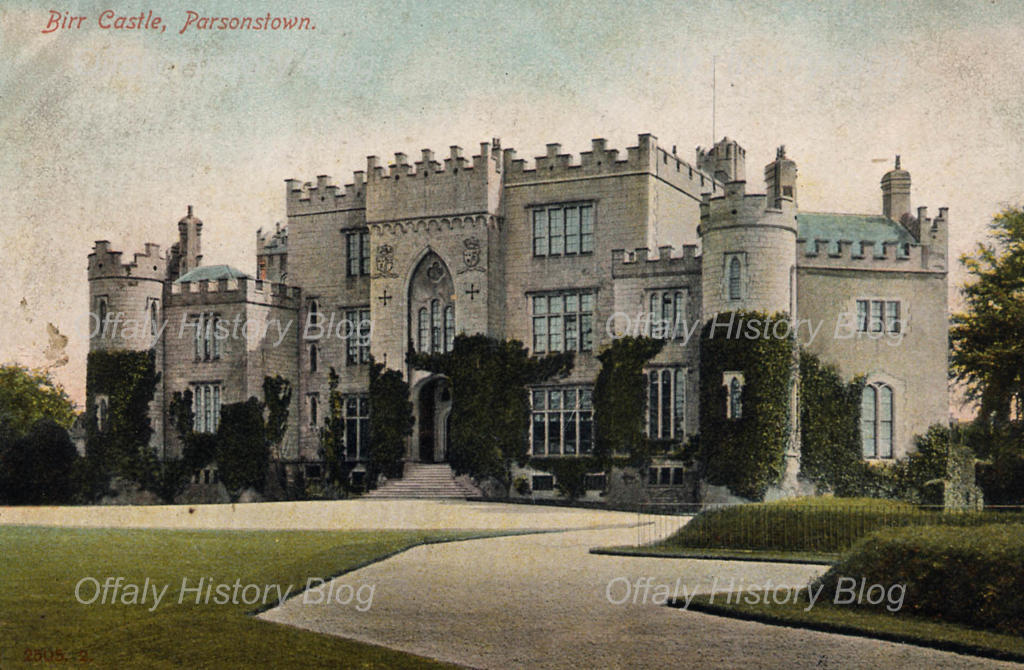 At seven o’clock on the morning of Monday, the 25th instant [June 1832] the Castle of Birr, the mansion of the Earl of Rose, was discovered to be on fire. The flame raged with destructive fury for several hours, and the entire center of the building had been consumed, but the wings have escaped the ravages of the devouring element – they have however, been considerably damaged to arrest the progress of the fire. A great part of the furniture with the library and family pictures have escaped unhurt. The loss occasioned by this conflagration is estimated at £10,000. It is supposed to have occurred from negligence or accident. Fortunately his lordship and family were from home. – The Castle was not insured.