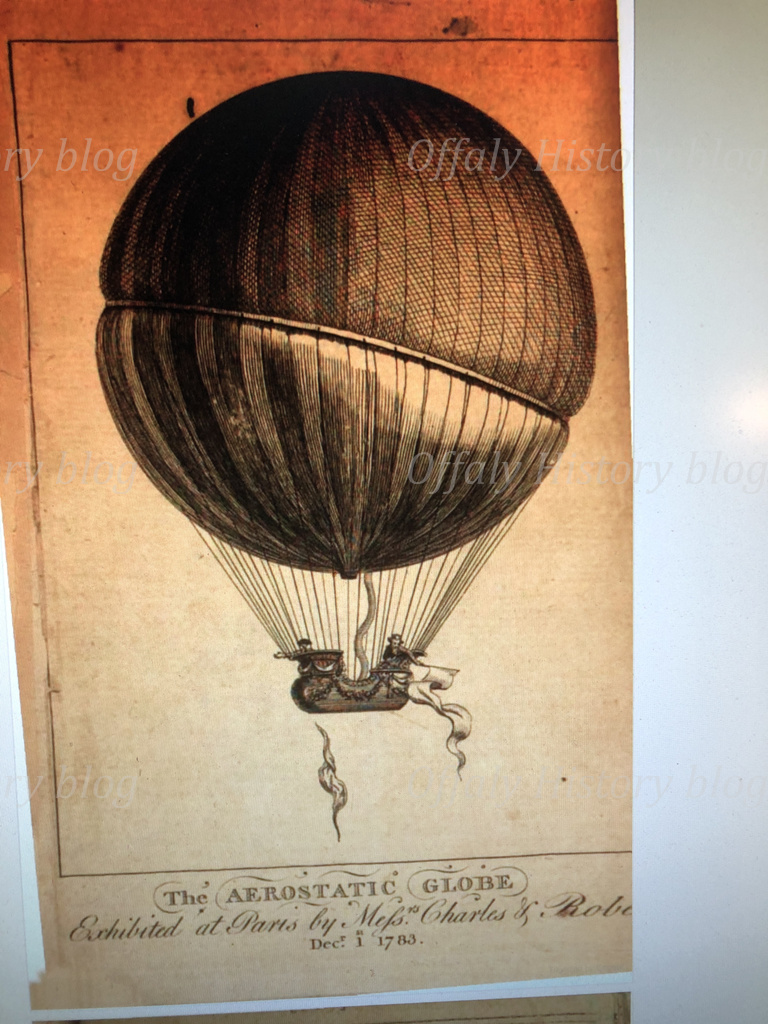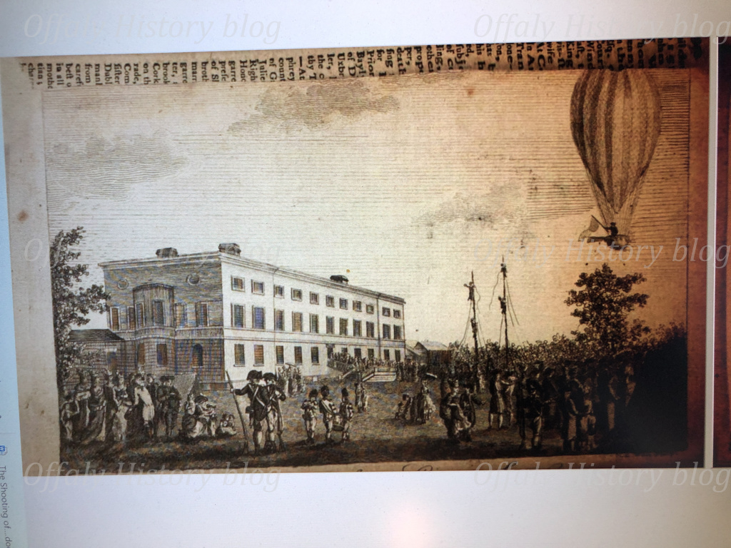 Offaly History have a vacancy for a qualified archivist at Offaly Archives (see our blog of 6 Jan. 2023 in regard to the post). Arriving for interview by air balloon would strike a chord. Speaking of which the balloon fire of 10 May 1785 is perhaps the best-known event in the history of Tullamore and yet there are few surviving accounts.