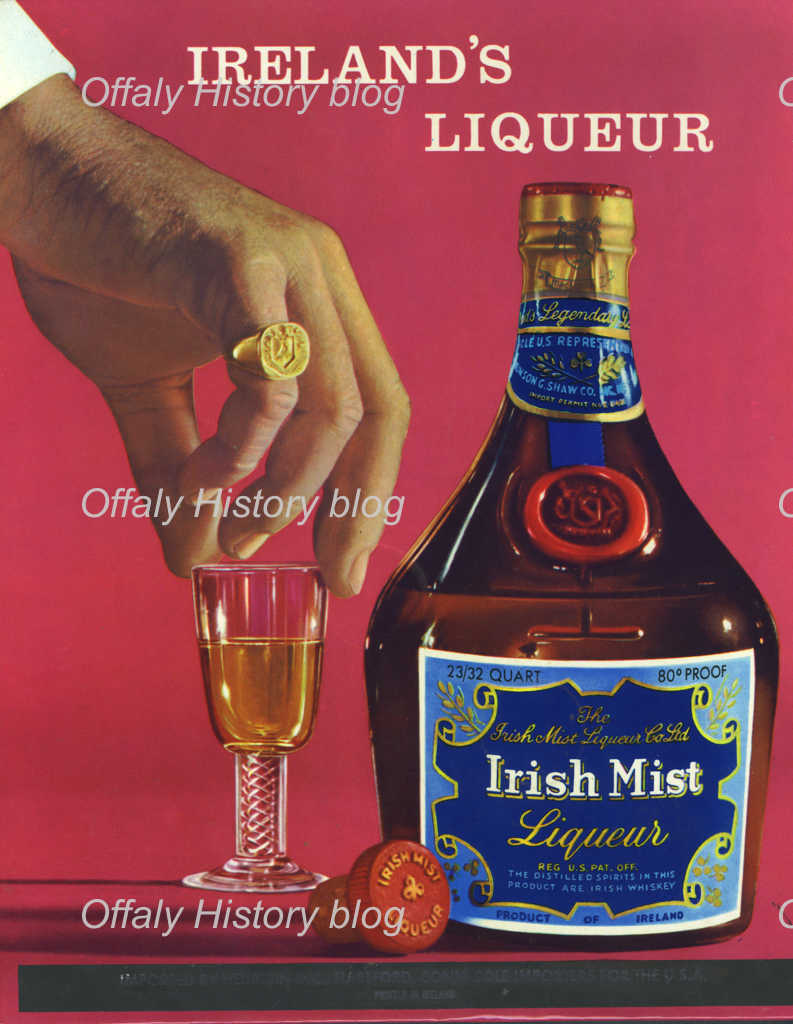 The good news is that with the support of Creative Ireland and Offaly County Council we are on an excursion to find out what made Irish Mist a product distributed worldwide and using the best designs for packaging. It was all started in Tullamore in 1947 so you can help fill in the gaps. We want to hear from people with memories. We want to record it in book form while there are people who can give first-hand accounts. You have a story to tell and you may have pictures. Please contact John Flanagan, Ardan Heights, Brian Jaffray or Michael Byrne. Why not email us info@offalyhistory.com or call to Offaly History Centre, Bury Quay, Tullamore. The work on the project has now started so get in early with your contribution of a memory or a picture.
