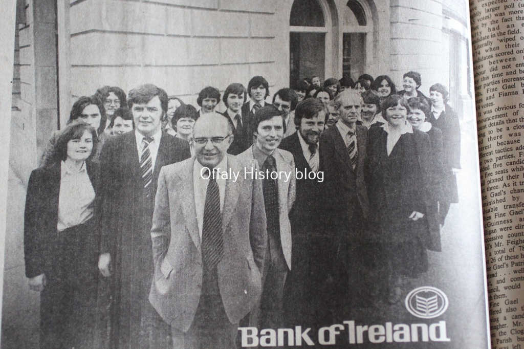Claude Hill was the manager at this time and he come from the Bank of Ireland and continued to serve as manager until 1982[9] when he was succeeded by Christy Lennon and later George Manzor. The combined Tullamore branches in 1979 was 37 staff members of whom about one-third were male with almost all of the senior managers men. By 2023 this had changed to 10 to 15 staff. From 2008 all the banks began to look at cost-cutting and reduction of staff. The banks became technology driven with even senior customers (who in the 1980s and 1990s were specially welcomed as ‘Golden Years’ clients) now expected to adapt to the new technology in regard to their bank business. For a time, what with the spate of retirements among senior staff in all the banks, it was hard to know who the manager was and less easy to meet him (or sometimes her). Lending dried up after 2008 and the effort was centred on recovery of funds with staff allocated to this function in place of the commission-driven lending of the 1997-2007 period. Now there is more money but rates are rising as are charges and the borrowers are hard-pressed while the savers lose perhaps ten percent per year on the value of their savings. A long way from the steady funds of Jane Austen’s time.
