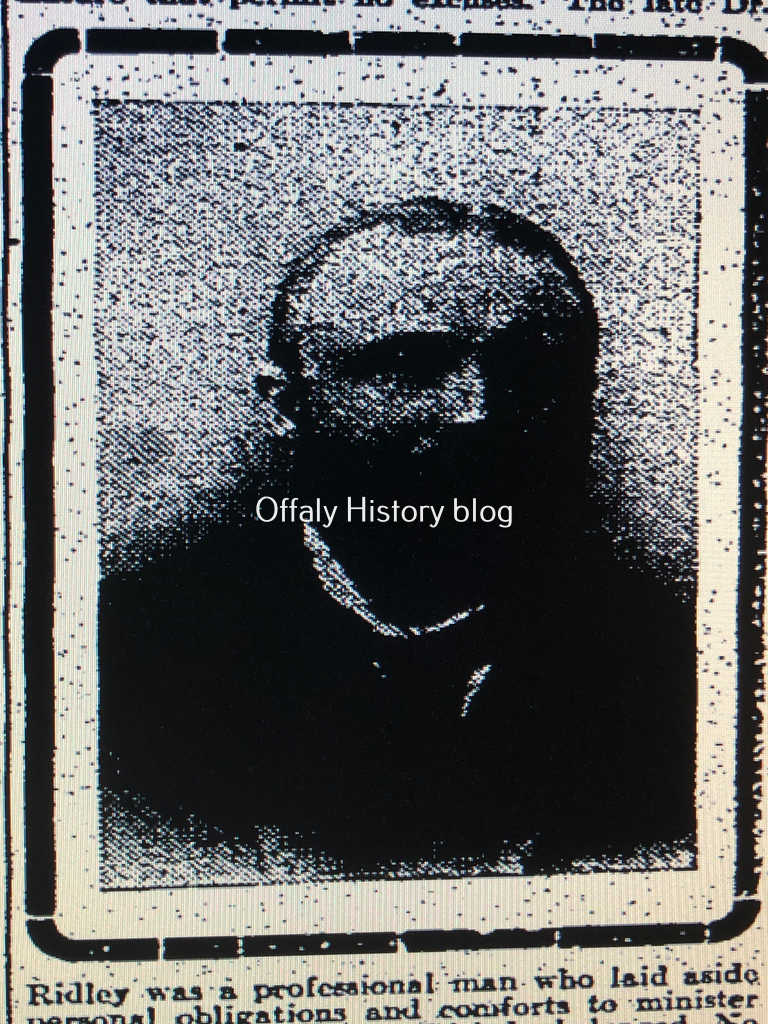 Francis Ridley, the builder of the house at Bridge Street was of an old Tullamore family with extensive property interests in Tullamore at this location and at Patrick Street and Columcille Street. The names of Francis Ridley and Elinor Ridley appear in the prerogative wills for 1782 and 1796 respectively while in the manor court book for Tullamore are the names of Francis (from 1765 to 1816 presumably father and son); John Ridley (1788–1876) and Robert (1776– 1789). The adjoining plot at 12 O’Connor Square was taken by Margaret Ridley. The family survived in Tullamore until the early 1900s and were for a time owners of the Charleville Arms Hotel and doctors at the infirmary and the gaol.