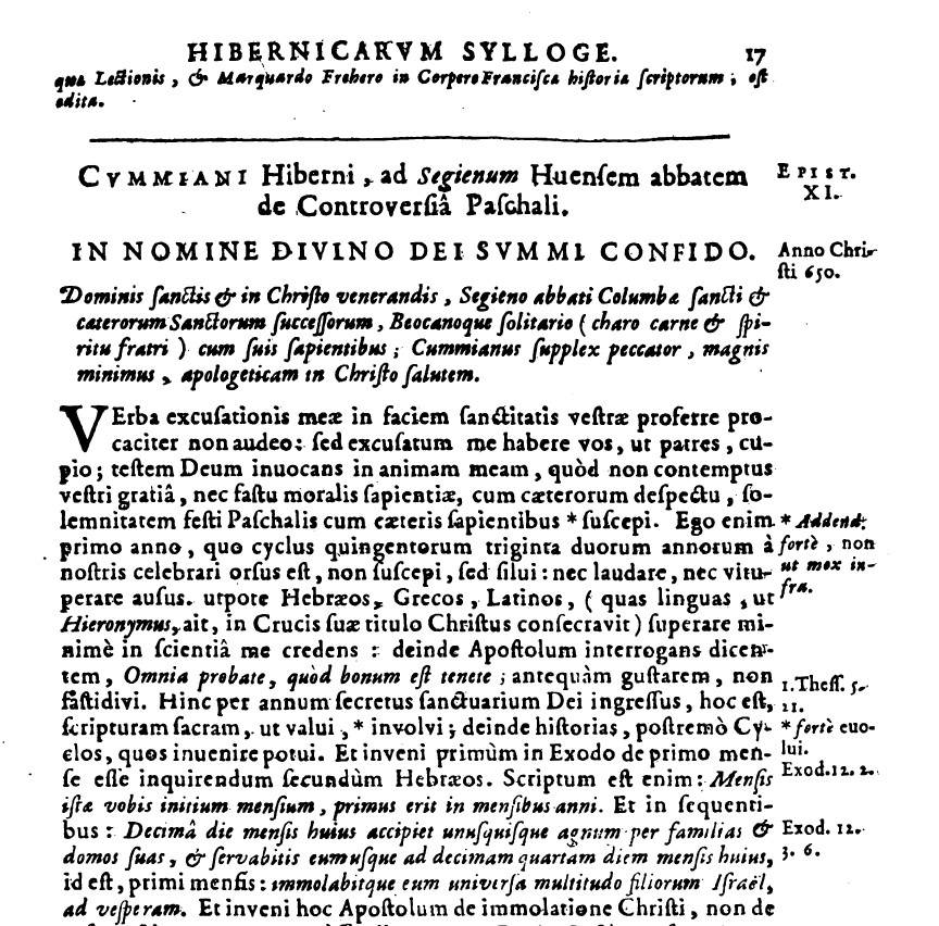 The full text of Cummian’s Letter is available from the UCC CELT Project at https://celt.ucc.ie/published/T201070.html.