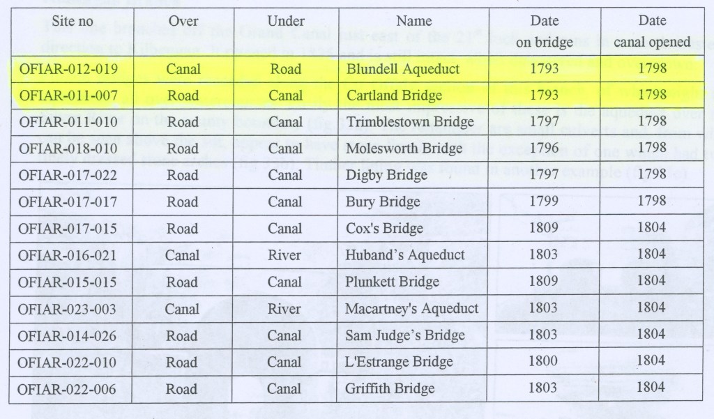 (12. Course Chart .Image source Bridges of County Offaly, A Heritage Review. By Fred Hamond. )