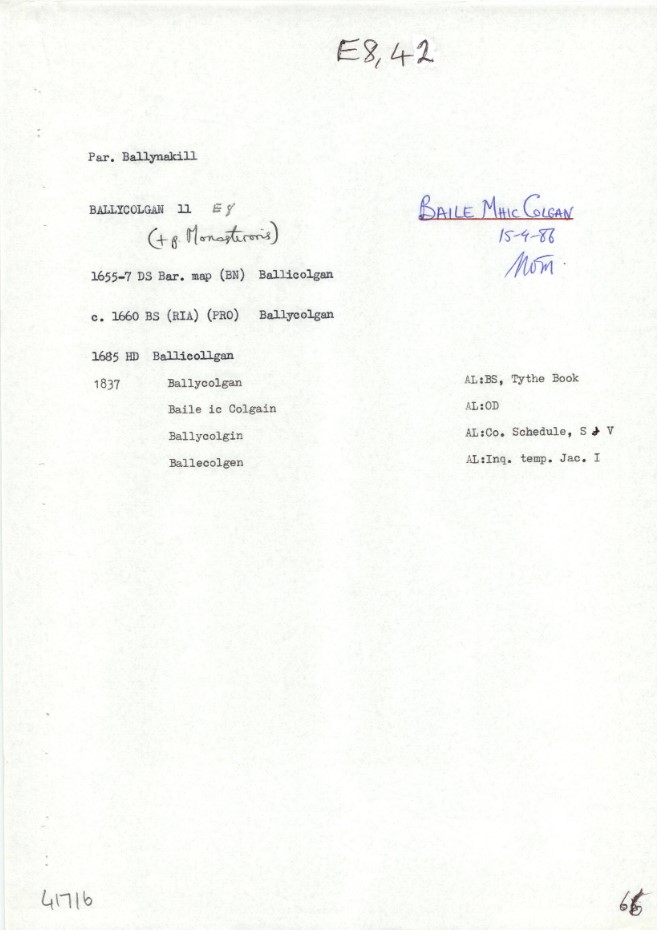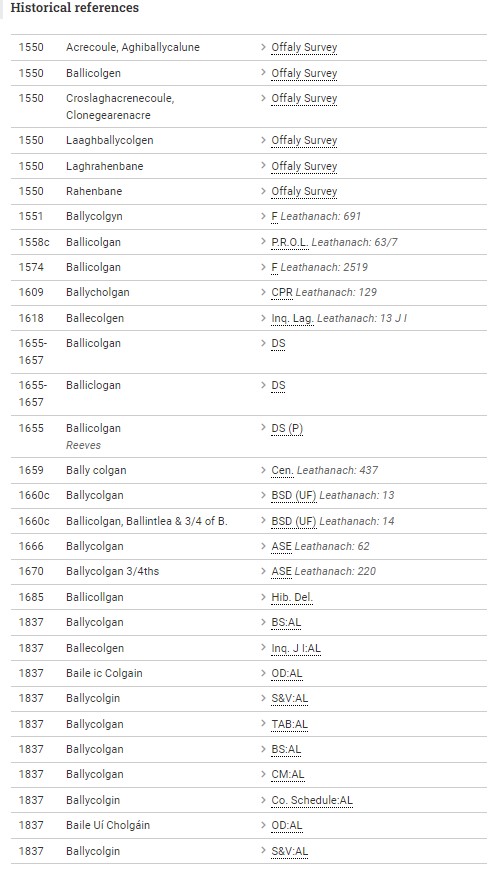 (16. Ballcolgen, Part1 Source: www.logainm.ie) (17.Ballcolgen, Part 2 Source: www.logainm.ie)