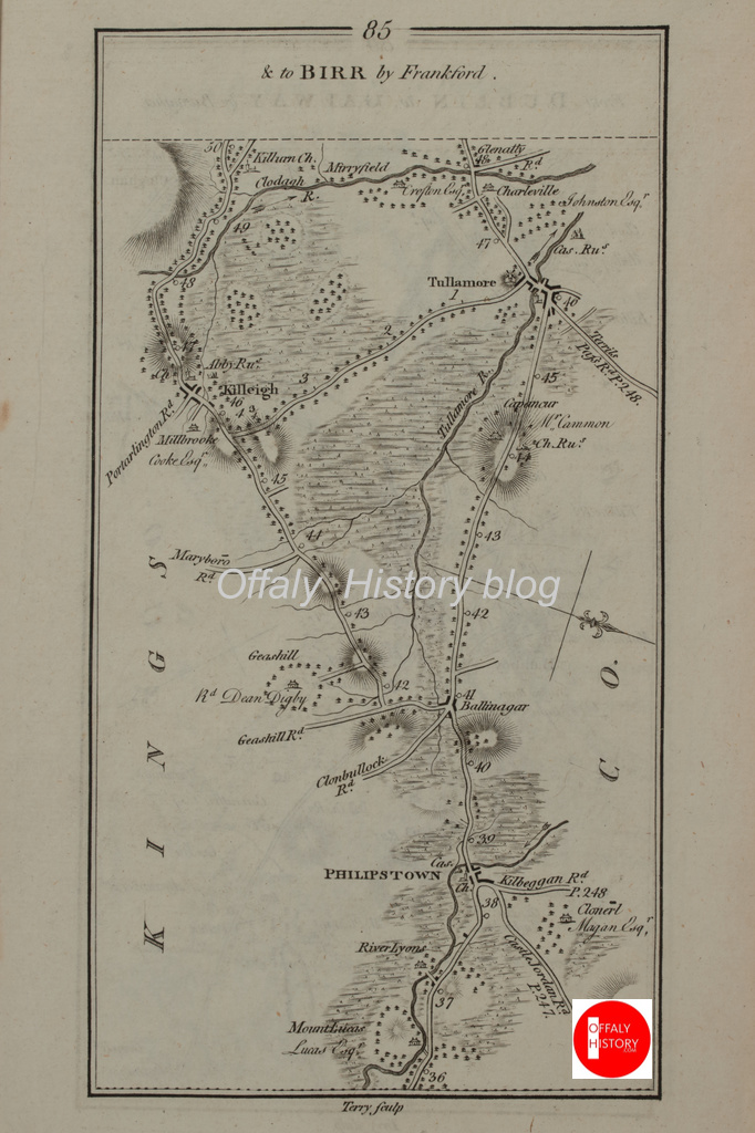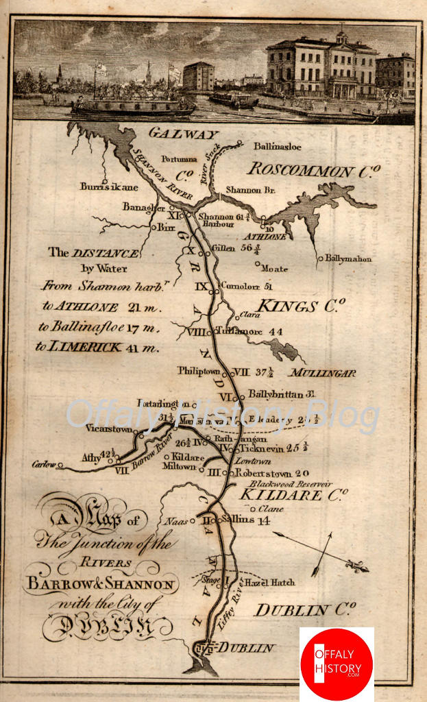 This article looks at the north Offaly towns featured in Major (later general) Vallancey’s report carried out in 1771 and designed to support the construction of the new Grand Canal line to Tullamore and the Shannon. Vallancey was then a young engineer, employed to report to the Commissioners of Inland Navigation and his findings were published in, A Report on the Grand Canal or Southern Line (Dublin 1771).[1] This report is useful as a window on some of the north King’s County (hereafter generally referred to as Offaly) towns and villages.[2]