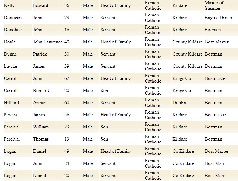 | 3nd | Kelly/Domican/Doyle/Carroll/Logan | RC | Master of steamer/boatman/boat Master/Engine Driver | 15 |