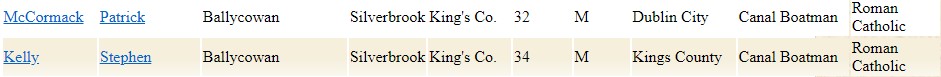 In 1911 Ballycowan had a record of 16 houses in the area, during this period the household returns and ancillary, shows us that there was 13 buildings all of Private Dwelling, that were inhabited, with classes of houses between 3rd and 2nd. Here are some of the families that occupied these buildings during this time: