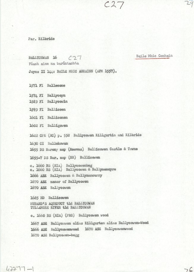 [1] Offaly, Through Time & Its Townlands. Thomas Lee. Pub. Ottait Publishing. 179