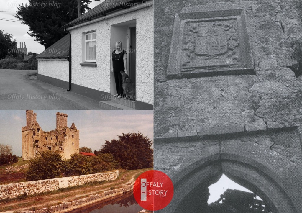 Over the entrance door of this old castle can still be seen the plaque, it displays the coat of arms of the Herbert family and in writing the words, By God of Might, I hold my Right. Which can be seen in the above photo, along with a phot of Ballycowan castle and a photo of the lock house and Retired keeper, Look closely and you can see Ballycowan castle in the background.