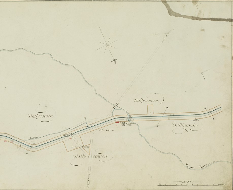 Lies on and N. of the Grand Canal, ½ mile E. of Ballycowan Castle ruins, and contains 192a. 2r. 26p.