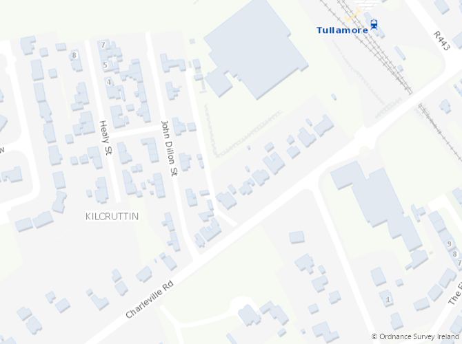 Map showing John Dillon Street, off Charleville Road in Tullamore ©Ordnance Survey Ireland