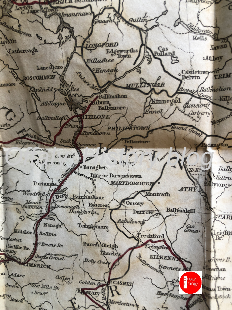 The road between Banagher and Athlone, I found one of the worst I had seen in Ireland. Few gentlemen’s seats are in its neighbourhood; and therefore, it is nobody’s interest to make a job [i.e road making by the grand jury] Some considerable distance before reaching Athlone the country improves, and the immediate neighbourhood of the town is finely diversified and well cultivated.”