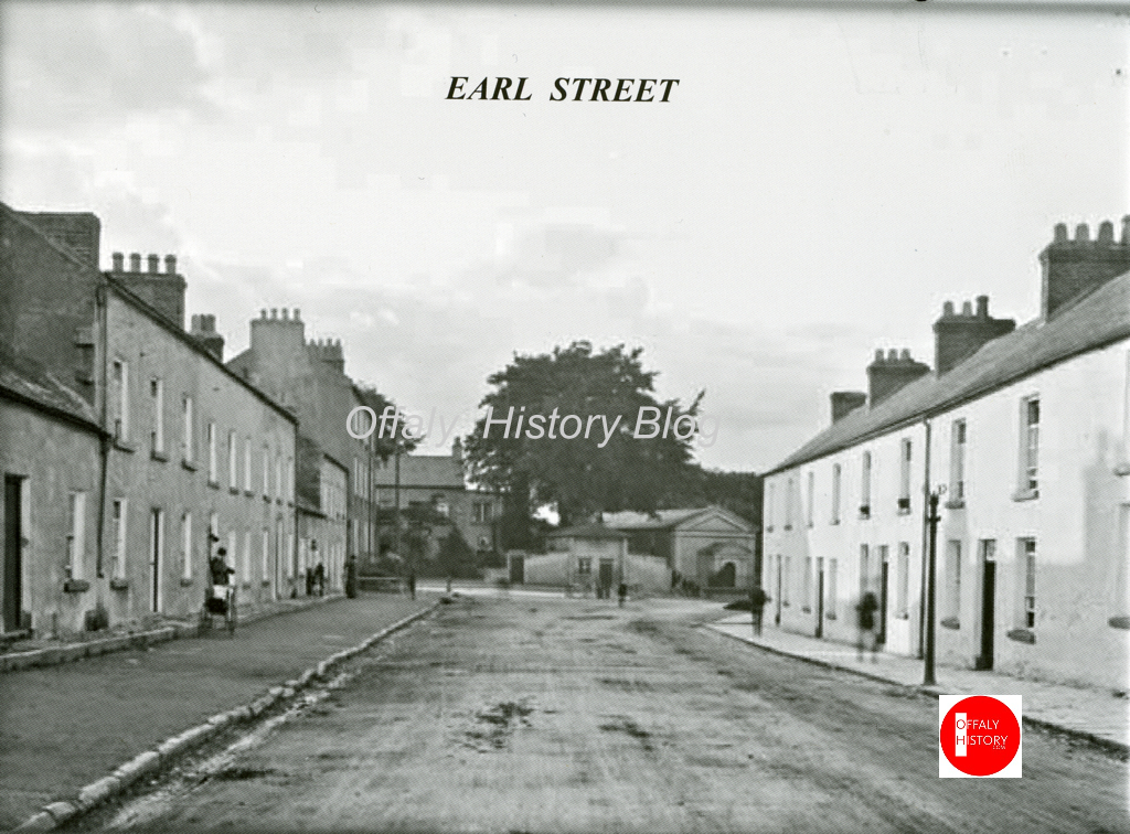 Most Tullamore streets have three layers of names: the first was the functional referring to the windmill, the second after the earl of Charleville, owner of Tullamore and the third after a local saint. O’Moore Street was known as Windmill Street in the 1820s, but by 1838 it was called Earl Street. The name was changed to its present one by the urban council in 1905 in response to the urgings of the Gaelic League, itself exhibiting the cultural change that preceded the 1916 rebellion. In 1905 it was named in memory of the O’Moores of Laois who put up a long struggle against colonisation in the late sixteenth century. The street-name has nothing to do with Moore Hall which is derived from a Protestant merchant family who built Moore Hall in the 1750s. The street is in two townlands: the northern side from High Street to Coláiste Choilm is part of the townland of Tullamore while the southern side is in the townland of Spollanstown. Both sides are in the parish of Kilbride and barony of Ballycowan.