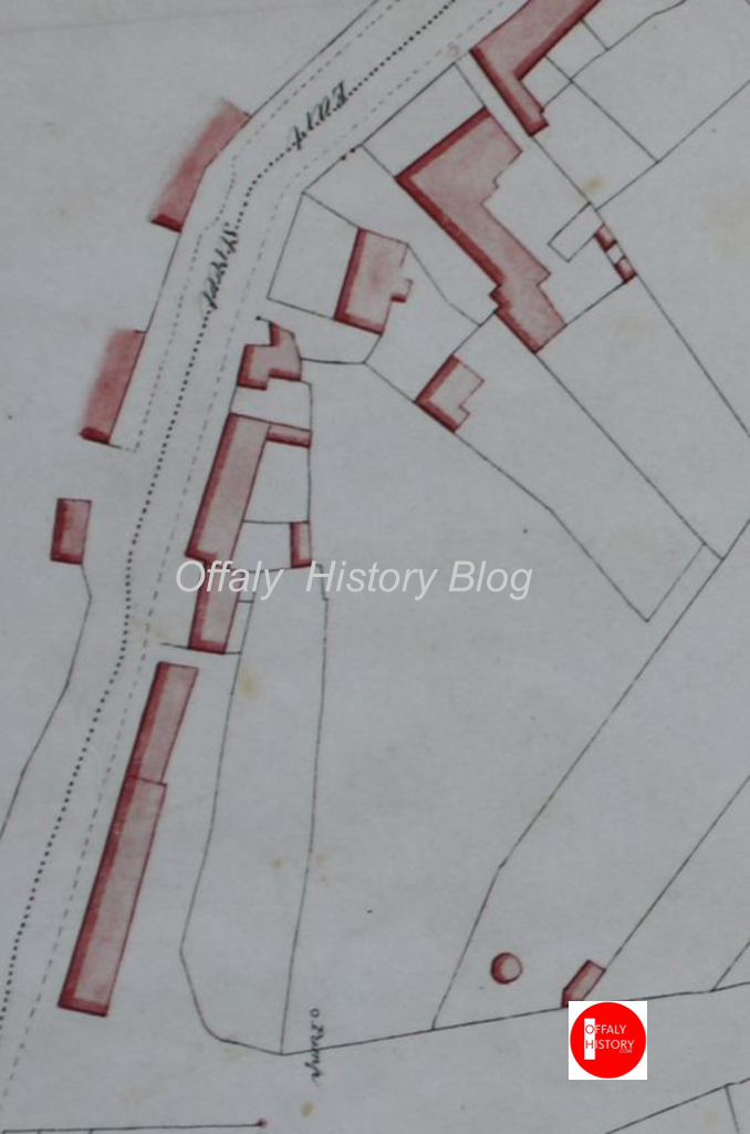 From the 1800s until the 1850s the housing on the northern side of O’Moore Street was very mixed. About 10 poor cabins near the present-day filling station of Heffernan’s were removed between 1843 and 1854 in the post-Famine adjustment. The Masonic lodge on the town side of the Cottage was revamped in the 1850s as a Quaker Meeting House and as a Masonic Lodge in 1884. The terrace of six houses between the lodge and Tyrrell’s shop were rebuilt in 1858 while the seven-house Victoria Terrace opposite the Cottage is 1837-38 in date and was fully completed by 1843. The site of the Cottage was the end of the garden of the 1750s house in High Street (no. 29 now known as Angelo’s) as was part, but not all, of Moore Hall. Plans to demolish the five single-storey shops and offices at the junction of High Street and build apartments fell in the late Tiger years. These units formed part of the Tullamore Motor Works and were the site of the small houses and shops, including Parker’s, up to the 1960s. Does anyone have a picture?
