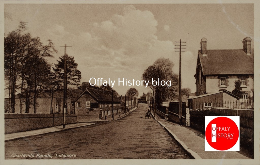 Last week we set out reasons why Cormac Street can be considered so good. Anybody getting off the train, visiting the town park or the courthouse cannot but be impressed. The street is very largely intact since it was built and has been enhanced by the town park. The restoration of the full Kilcruttin Hill beside the folly should be undertaken by the municipal council given its historic importance. Charleville/Cormac Street was the outer extremity of the town when building started here in the 1780s. Probably the Elmfield house (now the location of the Aras an Chontae) dates to 1795. Both Norris of that house and Acres of Acres Hall (dated to 1786) were functionaries of the young landlord’s family and both built on the road to the demesne. Bury came of age in June 1786 and so could regulate matters himself. While there were some cabins on Charleville Road these were temporary structures and aside from Elmfield no building leases were granted here until that to Daniel E. Williams in 1898. He completed Dew Park by 1900 and it was then regarded as the best house in Tullamore having taken that honour from Acres Hall. It reflected changing times with the demise and relative impoverishment of the Acres family and the growing importance of the new Catholic merchant class of Egan’s and Williams. While Williams had a virtual freehold in Dew Park lands the Egan family took a long lease from the Acres Pierce family of Acres Hall in 1891. The third big house that of Elmfield may well have earned the first-place honour but the Goodbodys sold this house in the 1880s and moved to Dublin. Richard Bull, the sub-sheriff moved in and departed after 1904 when the house was taken by Dr Kennedy who had moved from The Cottage in O’Moore Street.