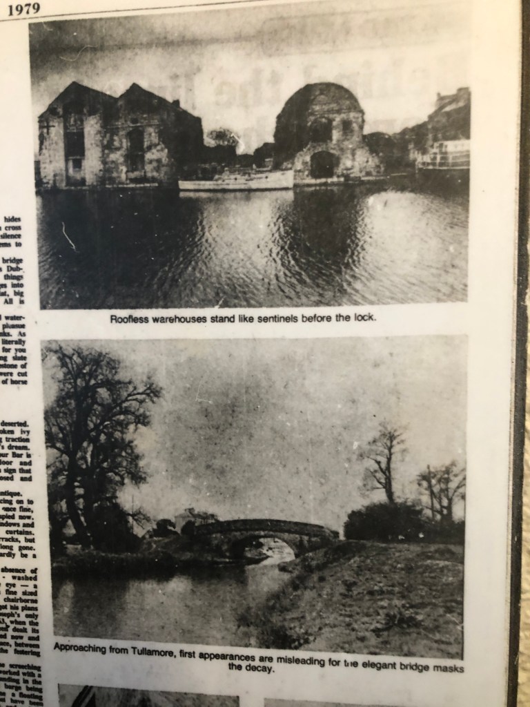 Now sadly no shops pass in the night, no lights flicker from the hotel to illuminate the waterfront, and a landlocked harbour in the centre of Ireland sleeps away the days.’ Thus Olson’s article concluded.
