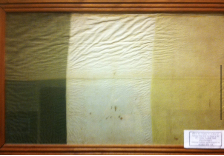 Shortly after his release from prison in 1918, the delayed 1917 county football was played at Clara. At the game, Sean Robbins hosted a tricolour manufactured by his neighbour Mary Margaret Bracken, herself an employee at Goodbody’s and Cumann na mBan member. This is believed to have been the first occasion at which a tricolour was flown during an Offaly County Final.