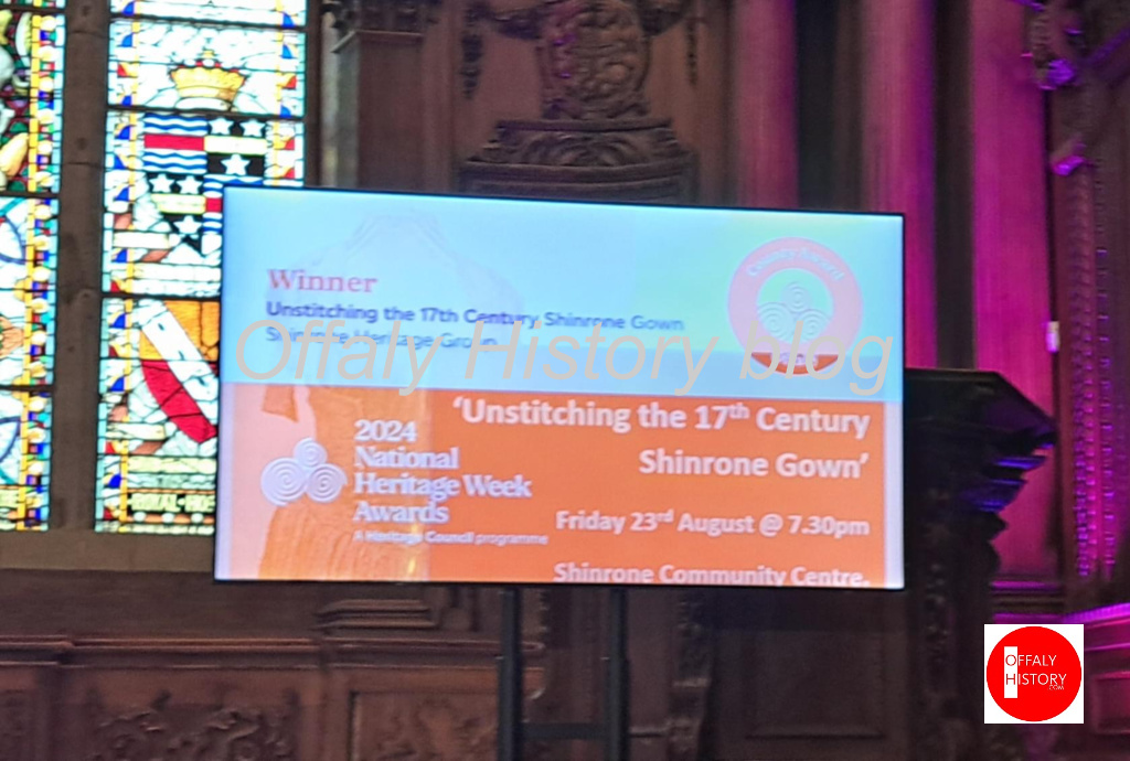 It was a big day for Offaly at the Heritage Week Awards held in the wonderful Royal Hospital Kilmainham on Friday 15 November 2024. As Amanda Pedlow, the Offaly Council Heritage Officer noted: