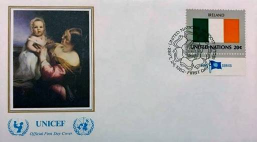 UNICEF first day cover of 1982 depicting ‘The Mother’s Pastime,’ Richard’s portrait of his wife Rosa and their first child Isabella. Sometimes known as ‘Madonna and Child.’ (Collection of Byrne-Rothwell).
