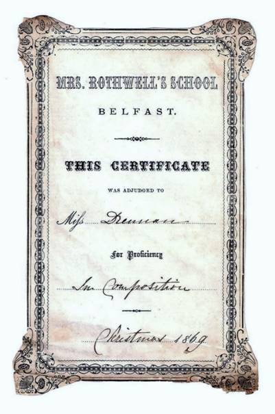 Richard’s daughter, Margarette (Margo) Rothwell (d. 1916), followed in her father’s footsteps to some degree. Living the latter part of her life on Claremont Avenue, Belfast, she is best known for her portrait of Isabella Tod who founded the North of Ireland Women’s Suffrage Society, the first campaign movement established in Ireland for the right of women to vote.