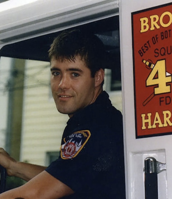 Tommy served with Squad 41 in the South Bronx. Outside of the FDNY he worked landscape gardening and had an eclectic set of interests including his Harley-Davidson motorcycle and rodeo bull riding. In August 1999, a construction worker was left dangling from a safety harness 12 stories above West 108 Street in Manhattan, when a scaffolding collapsed. After attempts to rescue the man utilizing a Fire Truck’s 110 Foot ladder fell short, the fire crews hauled their equipment to the roof top enabling Tommy to abseil down from the seventeenth floor, hook the stranded worker to his own harness and descend to the extended ladder. The rescue garnered Tommy both a Fire Department commendation and media attention. A series of press articles, including a profile in People Magazine’s 100 most eligible bachelors, and as series of roles as an extra on TV dramas such as the Sopranos followed. A year later Tommy transferred to Rescue 3.