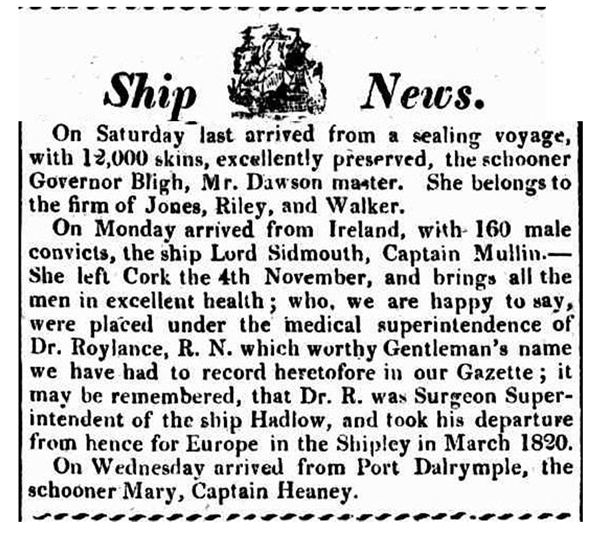 Sydney Gazette and New South Wales Advertiser, 24 Feb 1821, online at https://trove.nla.gov.au/newspaper/article/2180105?searchTerm=lord%20sidmouth.