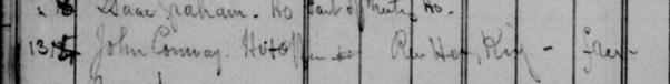 John Conway, Lot 13 Ballycumber Road, Ferbane, King’s County, Griffith’s Valuation, 1854, image online at https://www.askaboutireland.ie/griffith-valuation/index.xml?action=doNameSearch&Submit.x=43&Submit.y=9&familyname=conway&firstname=john&baronyname=&countyname=KING%27S&unionname=&parishname=WHEERY.