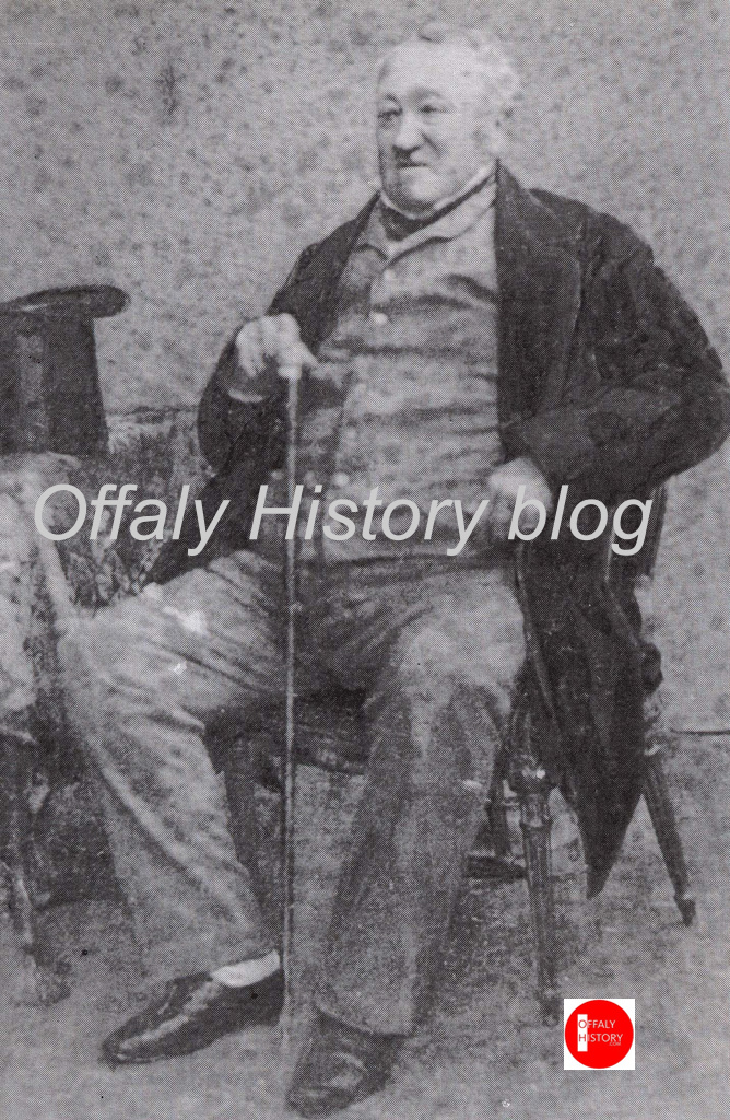 A surviving report on the King’s County Infirmary of 1824–5 confirms that 366 patients were admitted in the year end to 6 January 1825, eleven died in that period, and that 8,506 extern patients were treated. The report for King’s County was largely prepared by Francis Berry, the agent to the earl of Charleville from about 1820 up to his death in 1864. Berry particularised the annual expenditure in 1824 of almost £900 including that of the salary of Surgeon George Pierce at £120, and the other eight staff combined at little more than the same amount. The diet relied more on bread, milk, oatmeal and pudding with potatoes comprising about 30 percent of the expenditure on food.[11] Pierce had been appointed as county surgeon in 1817 and survived until 1859. He was succeeded by his son-in-law Dr John Ridley, who lived at Moore Hall.