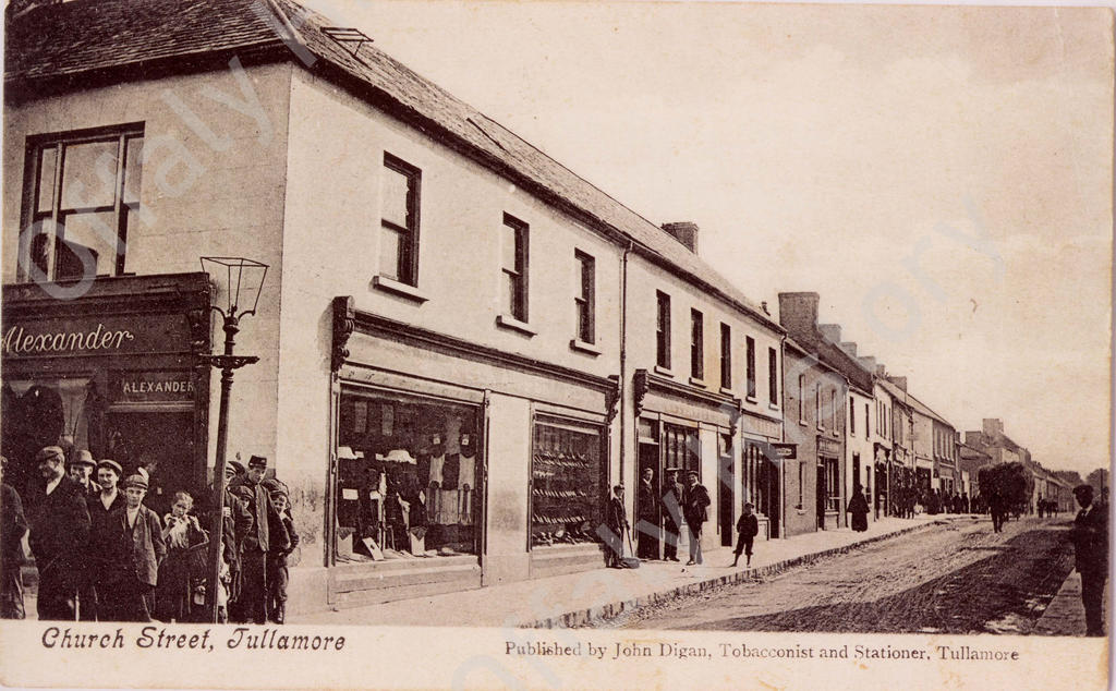 1901 Census Church Street: a summary. May be best to open on a desktop. Edited by removing class of house, number of families and the enumeration of family and others. See the full census online at Ireland census 1901 from National Archives of Ireland. The house numbers do not correspond with the Griffith Valuation or the 1911 census. Here they start after the Tullamore Drapery shop continue to the river on the Charleville school side and back up to Hayes’ Hotel.