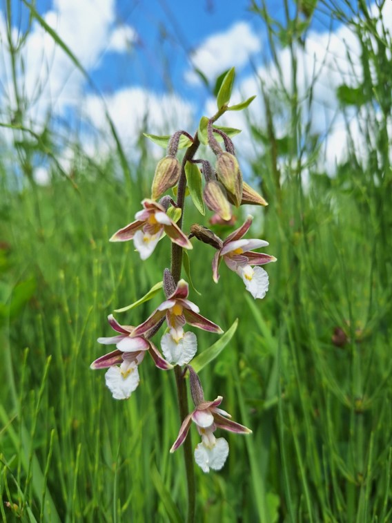 The striking Marsh Helleborine (Epipactis palustris) generally emerges from limy marshes, fens and lakeshores from June to August each year. Marsh Helleborine is relatively rare despite having a wide distribution across the country. These perennial orchids hold their attractive spiked flowers in sets of twelve or more on each stem and can grow up to a metre in height.