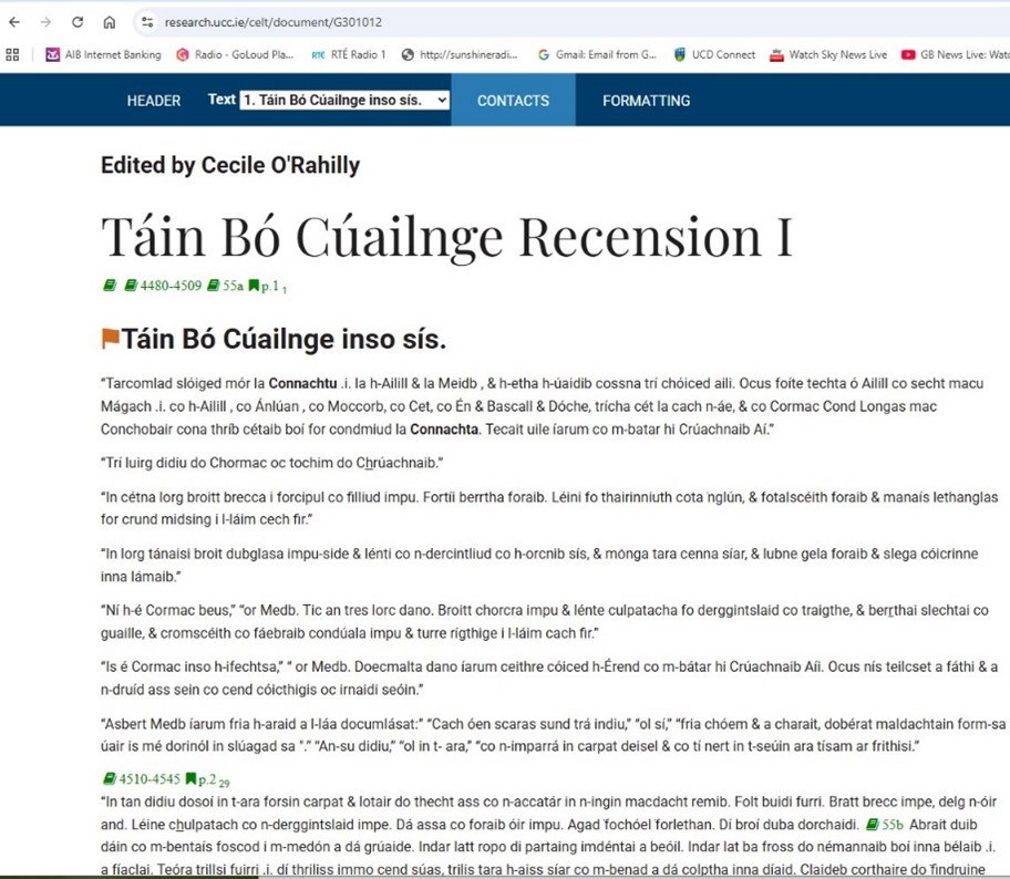 Táin Bó Cuailgne, from CELT on the UCC website.