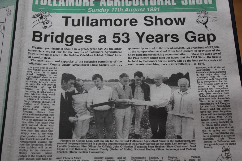 Tullamore Show Origins: Freda traces the start of the famous agricultural show to a 1990 meeting led by Christy Maye. Christy wanted the Midlands to have an event where everyone could experience the joy he felt as a child winning a competition at his local fair.The first show in 1991 was an immediate success, attracting 4,000 to 5,000 people and featuring everything from cattle and sheep to baking and crafts.