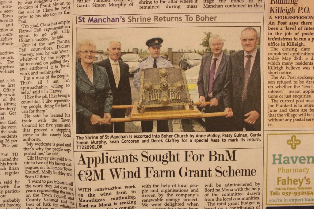 One hundred blogs is a reason to celebrate this September day in 2018. Yes 100 articles, 150,000 words, at least 400 pics – and the 100 stories have received 64,000 views and climbing every week. In 2018 alone we have received over 32,000 views. The list of all that has been published can be viewed on Offalyhistoryblog. We have lots more lined up. We welcome contributors, so if you have a history story you want to share contact us. The other big story is happening on Monday night with the launch of Offaly History 10. (more…)